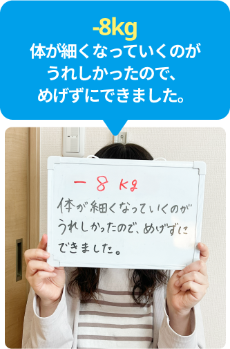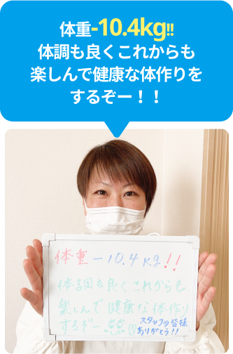 「ダイエットしている」感がなく、鍼灸の効果もあってかストレスや疲労感など少なく、楽しく体重を減らすことができました。